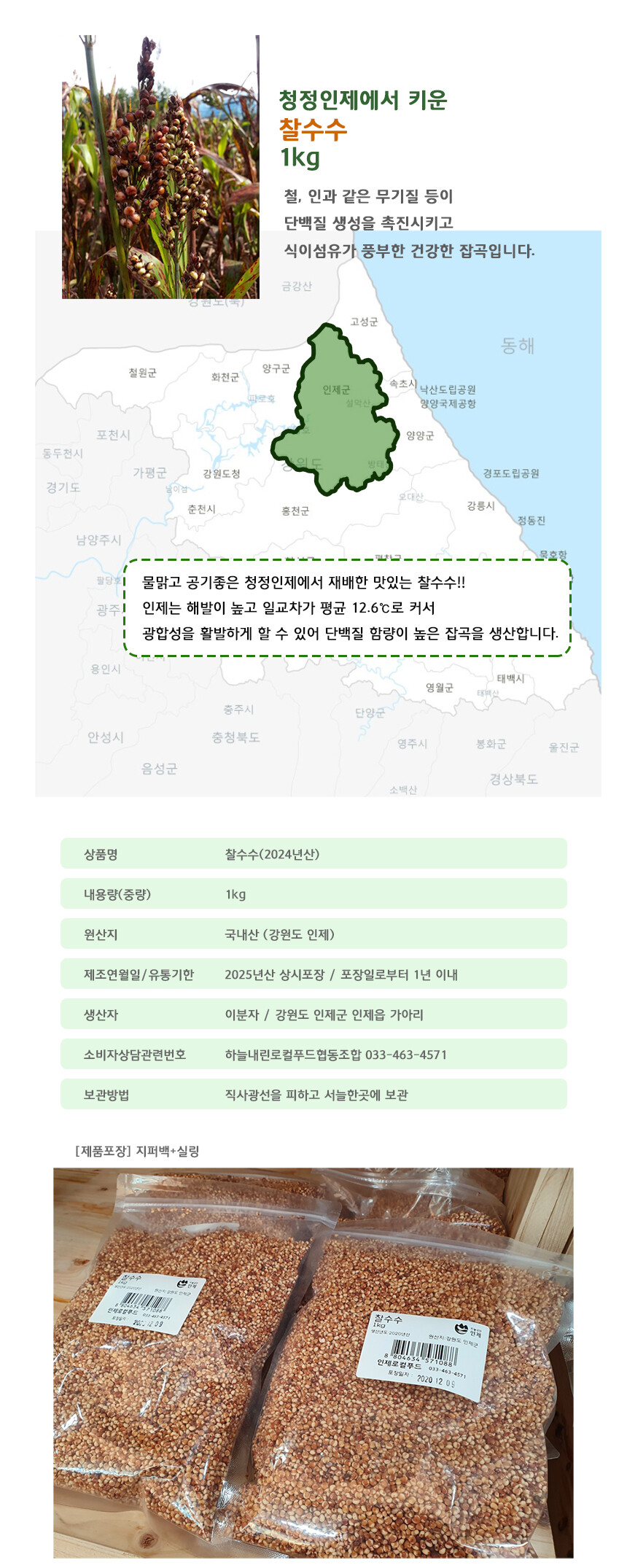 강원도 인제 찰수수 1kg 국내산 2025년산 [로컬푸드]