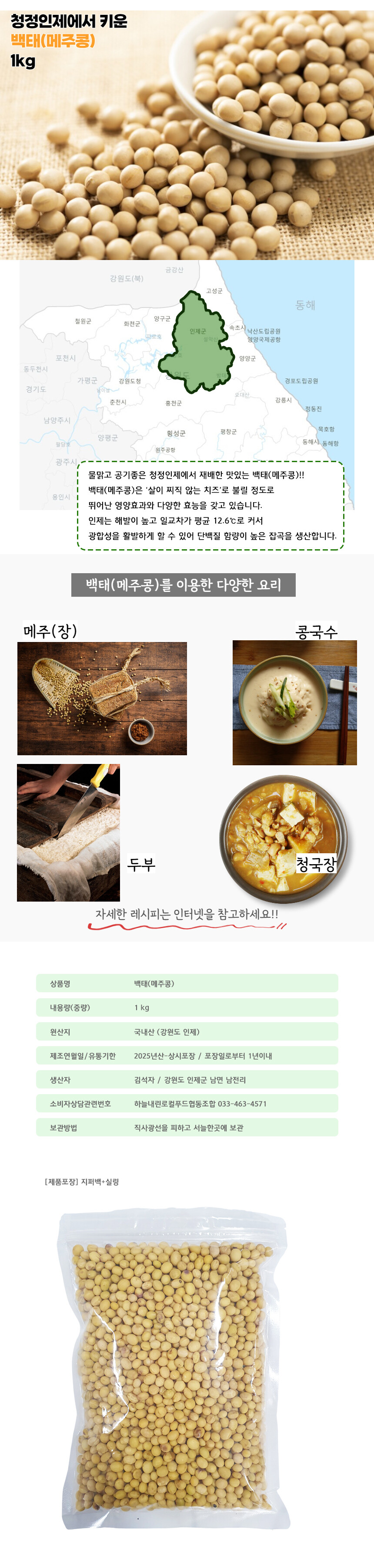 백태 메주콩 2kg 2025년산 국내산 강원도 인제 [로컬푸드]