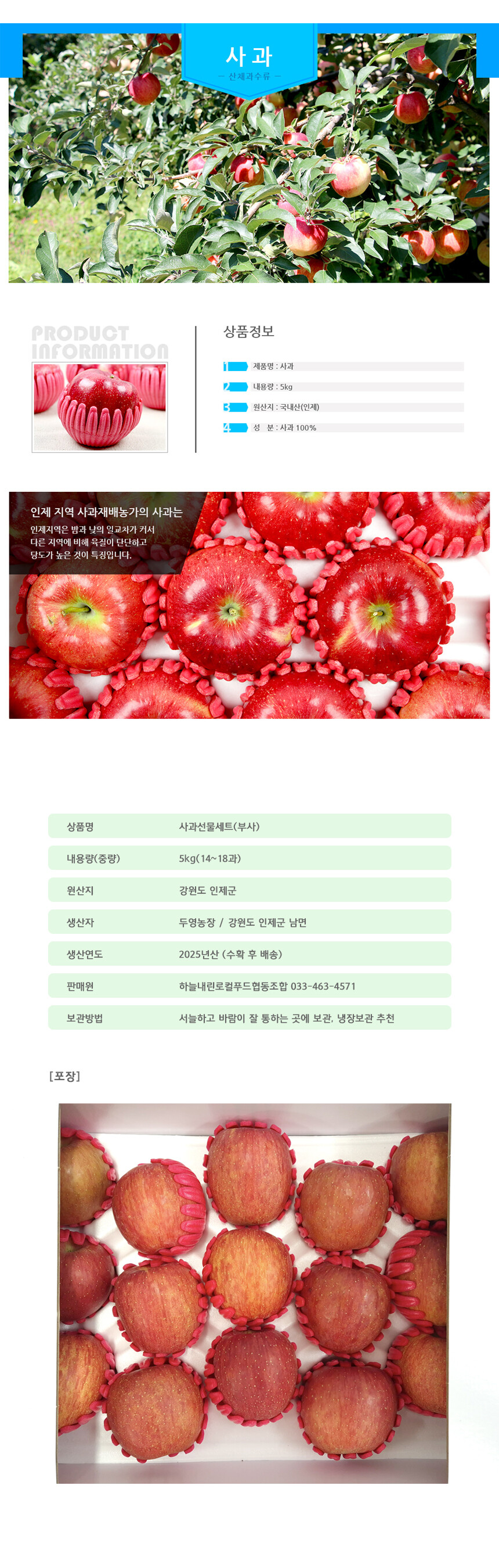 인제 부사 사과선물세트 5kg 14과~18과 [로컬푸드]