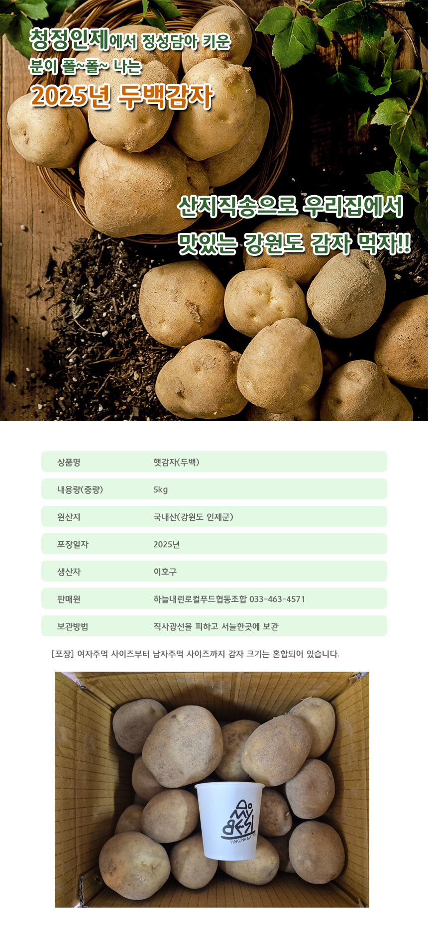 2025 강원도 인제 분이 나는 두백 햇감자 5kg [로컬푸드]